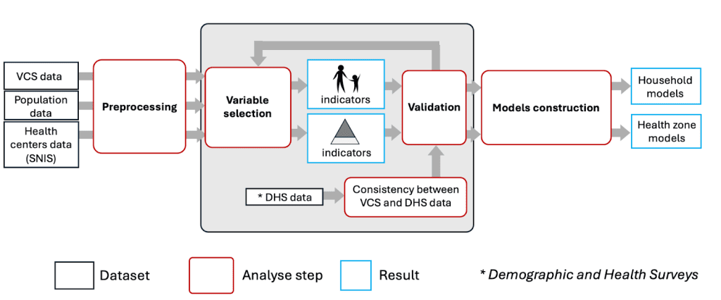 To capture a realistic picture of the DRC’s immunization landscape, the project integrates vast and diverse datasets. This includes massive Vaccination Coverage Surveys assessing around 80,000 households annually, high-resolution population distributions utilizing tools like GRID3 and WorldPop, and official health facility data detailing workforce capacity and vaccine stocks.